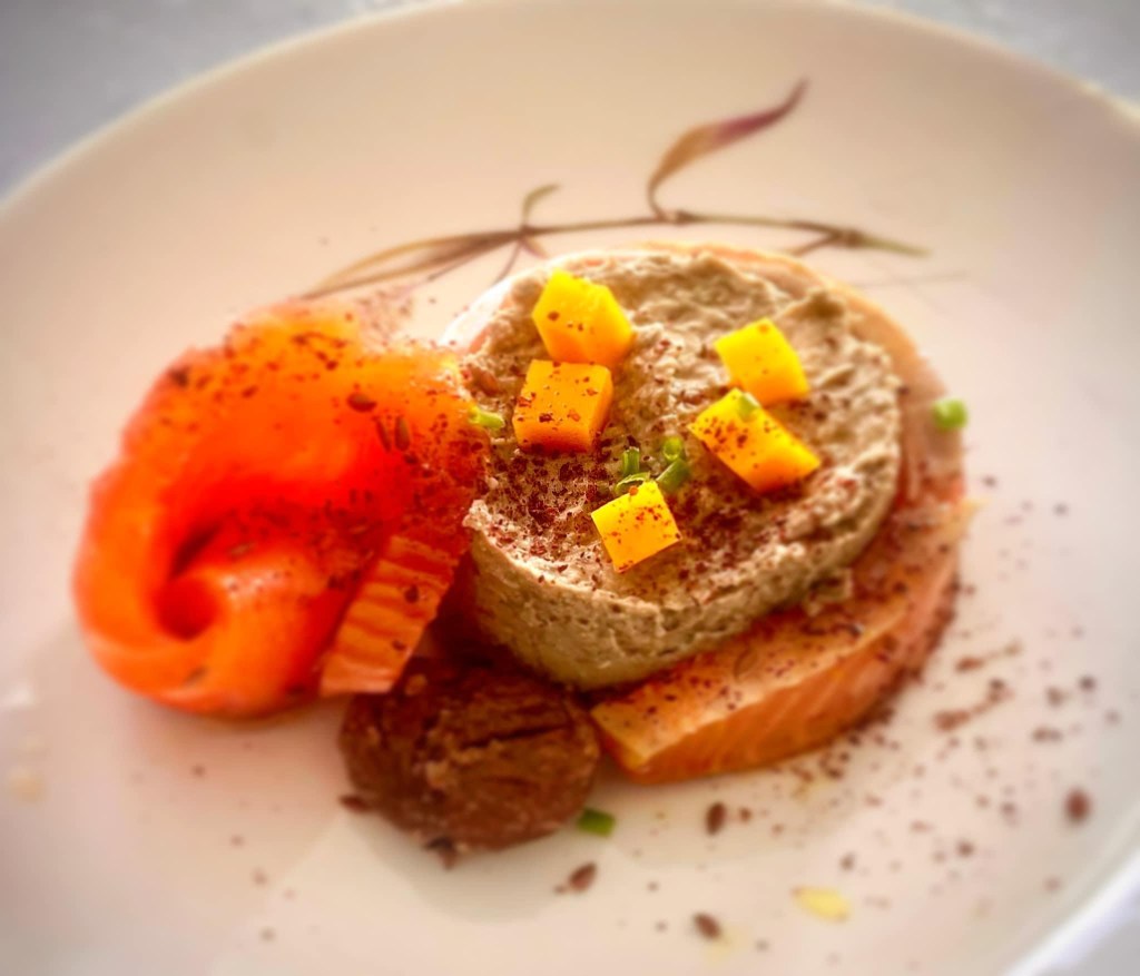 – houmous de lentilles et saumon gravlax 9,50 € la part