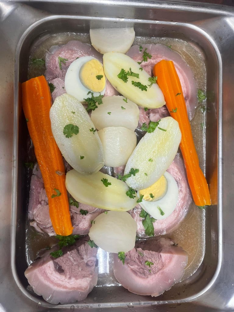 - Tête de veau façon pot au feu, sauce ravigote à 9,50 € la part
